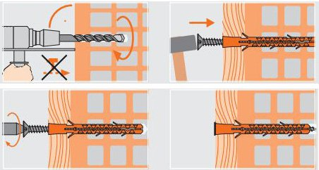 • Применяйте универсальные решения. Универсальные шурупы совместимы с широким спектром дюбелей. Они обеспечивают полное раскрытие распорки, имеют высокую жесткость.